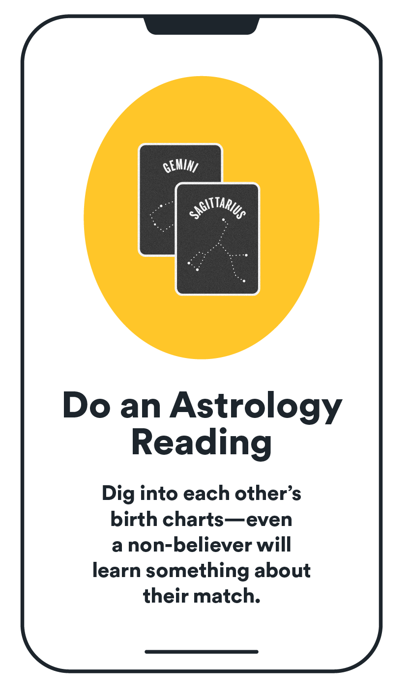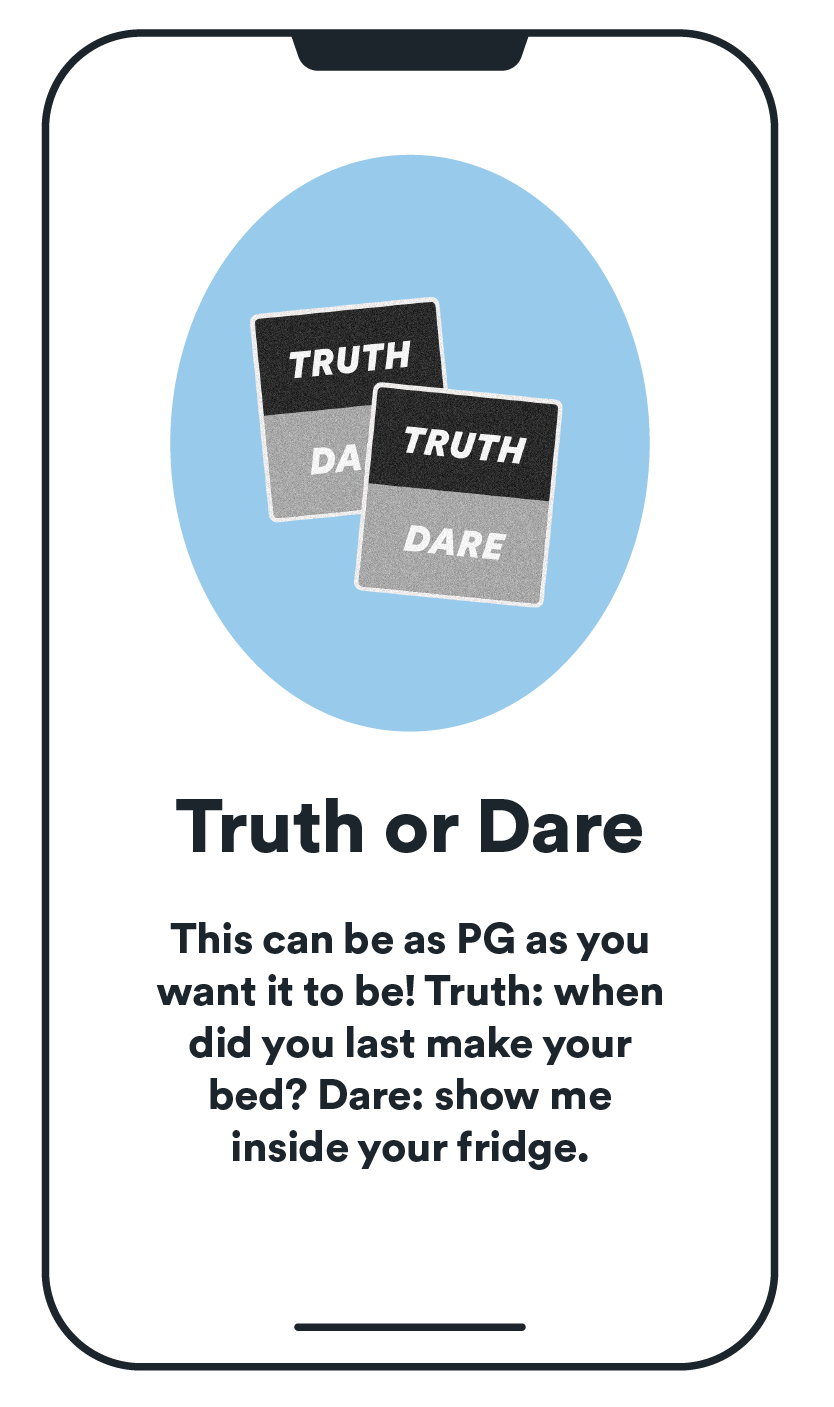 If you’re feeling a bit awkward about the whole thing, you might want to prepare a ‘cheat sheet’ beforehand by writing down questions for your match or things you want to talk about. Another idea? Plan a video date activity; Boodram suggests something simple like Never Have I Ever. “Those fun games that promote self-disclosure are going to create that fast, intimate bond and bypass all that awkwardness,” she explains.