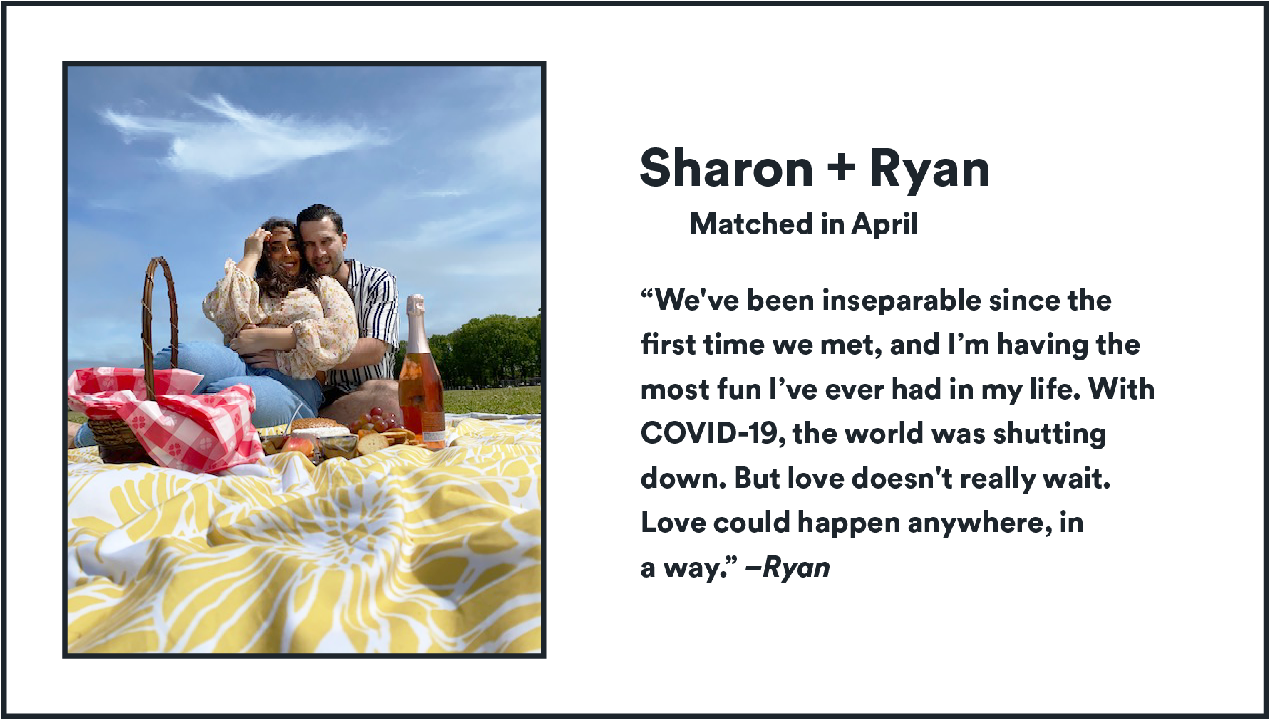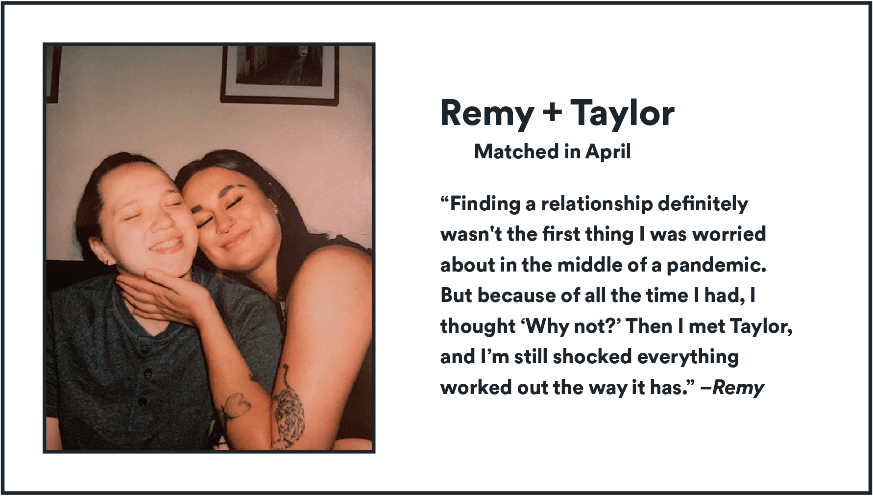 You don’t need to take our word for it. Plenty of people have met on Bumble and started relationships at the height of the pandemic. We asked our community to submit their stories of love during lockdown, and were inundated with thousands of couples seeking to let us know that they found each other during this most strange of times.